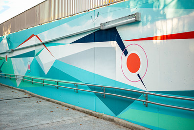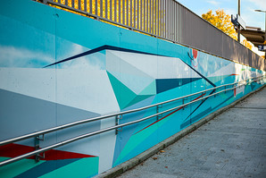 Die Haltestelle in Gliesmarode wurde vollumfänglich neu gestaltet. Im Rahmen dieses Prestigeprojektes hat Sebastian den gesamten Rampenaufgang mit Fassadenflächen von ca. 600 qm bemalt.